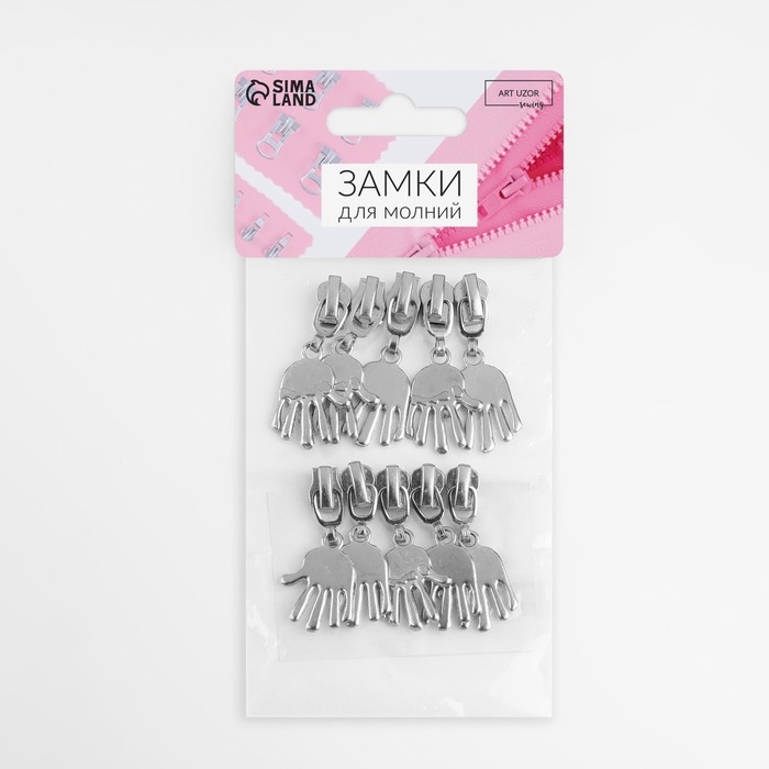 Бегунок автоматический для металлической молнии, №3, декоративный «Ладонь», 10 шт, цвет никель