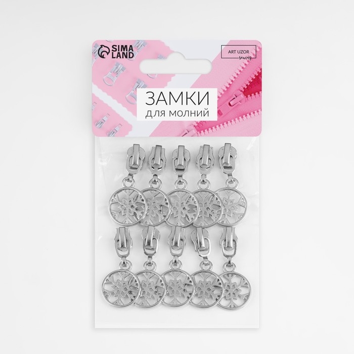 Бегунок автоматический для металлической молнии, №3, декоративный «Снежинка», 10 шт, цвет никель