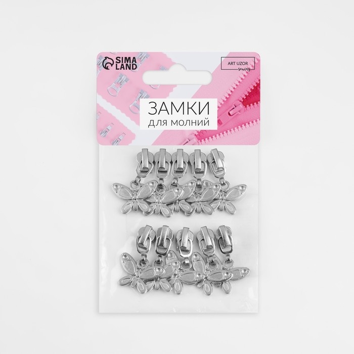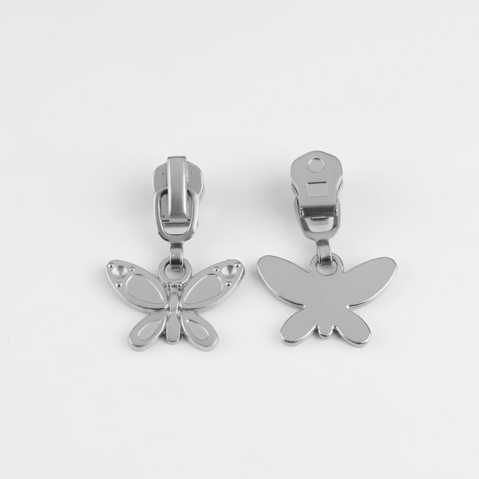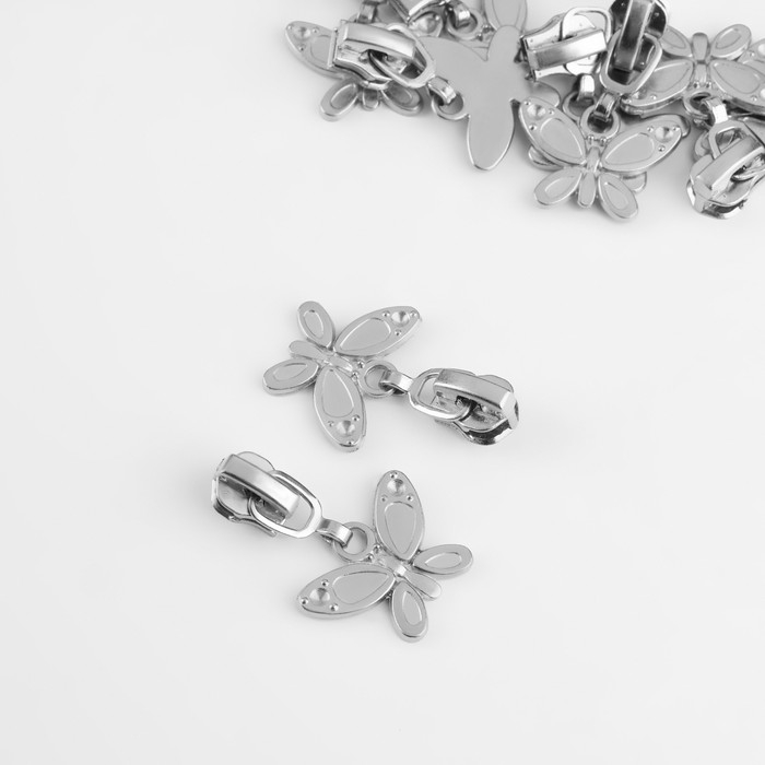 Бегунок автоматический для металлической молнии, №5, декоративный «Бабочка», 10 шт, цвет никель