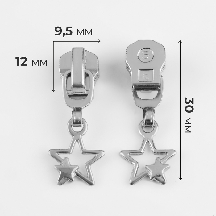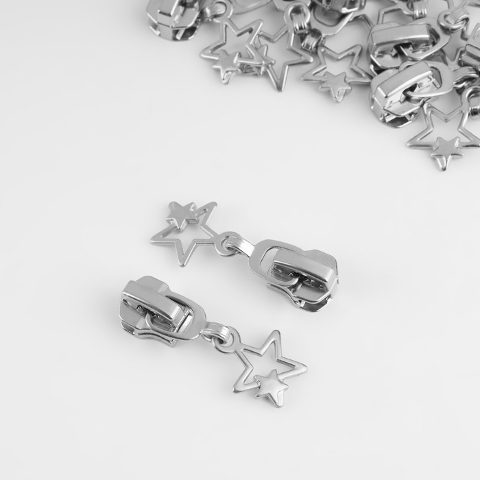 Бегунок автоматический для металлической молнии, №5, декоративный «Звёзды», 10 шт, цвет никель