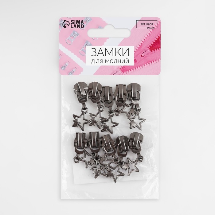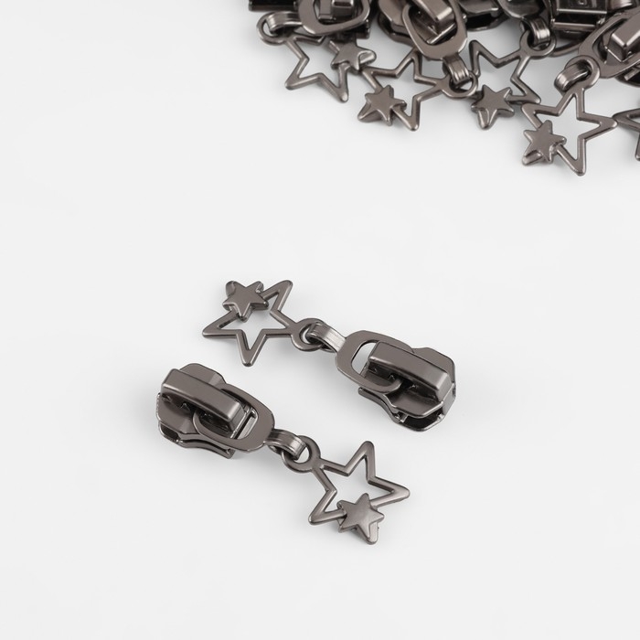 Бегунок автоматический для металлической молнии, №5, декоративный «Звёзды», 10 шт, цвет чёрный никель