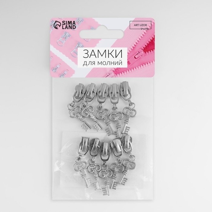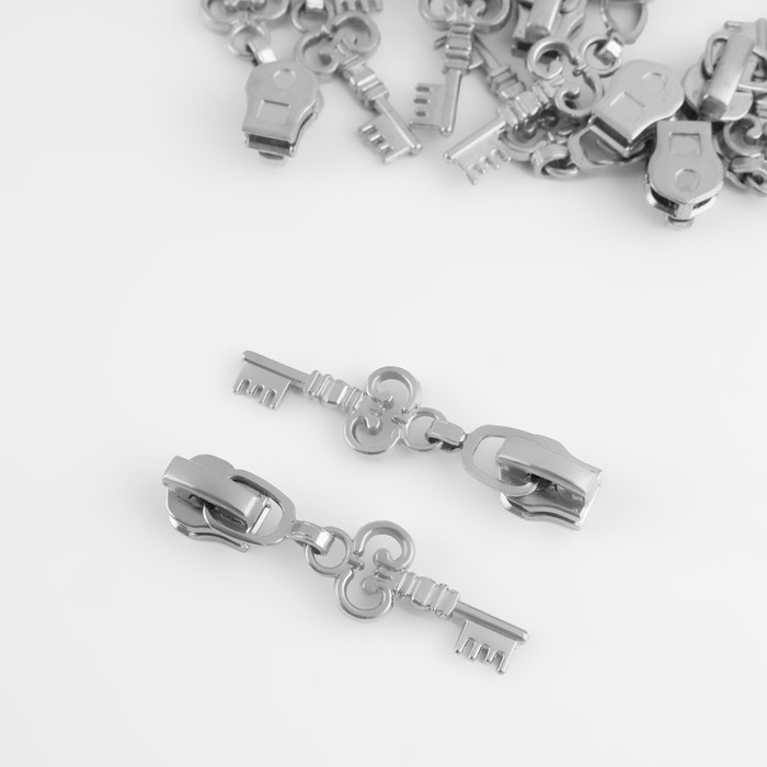 Бегунок автоматический для металлической молнии, №3, декоративный «Ключ», 10 шт, цвет никель