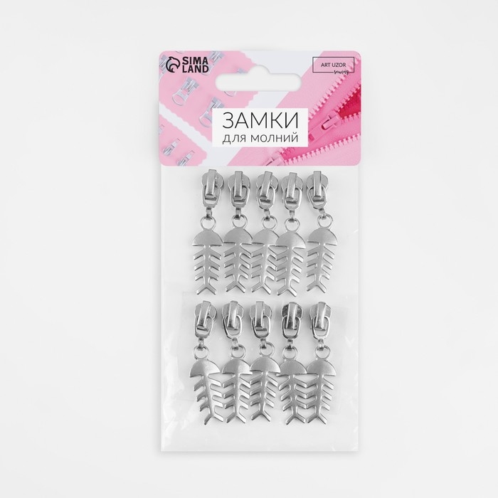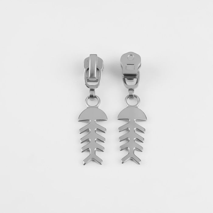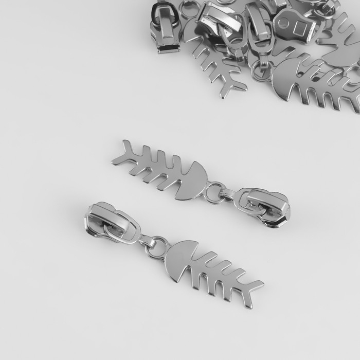 Бегунок автоматический для металлической молнии, №5, декоративный «Рыба», 10 шт, цвет никель