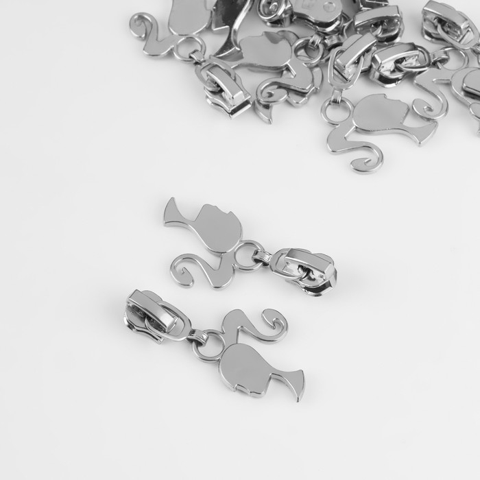 Бегунок автоматический для металлической молнии, №5, декоративный «Рыба», 10 шт, цвет никель