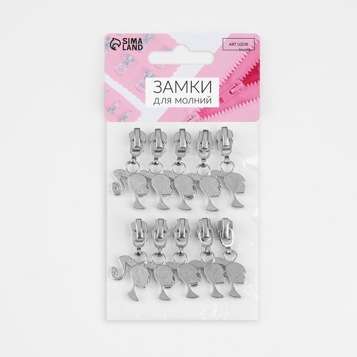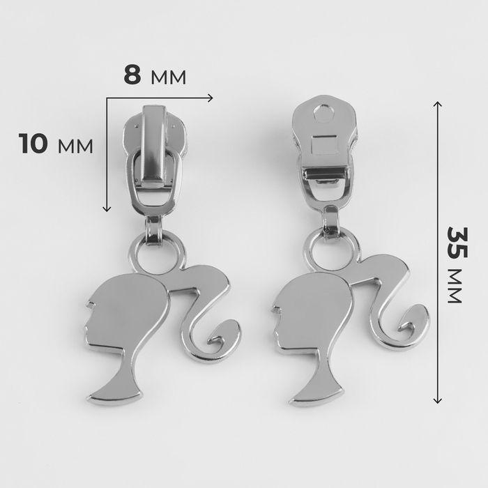 Бегунок автоматический для металлической молнии, №3, декоративный «Кукла», 10 шт, цвет никель