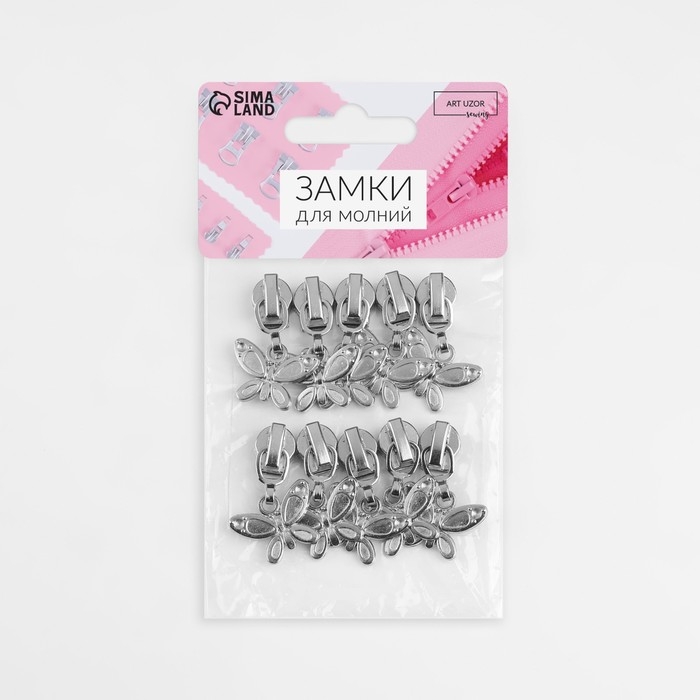 Бегунок автоматический для молнии «Спираль», №5, декоративный «Бабочка», 10 шт, цвет никель
