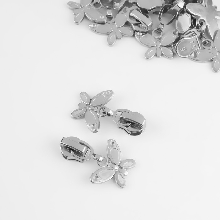 Бегунок автоматический для металлической молнии, №5, декоративный «Бабочка», 10 шт, цвет никель