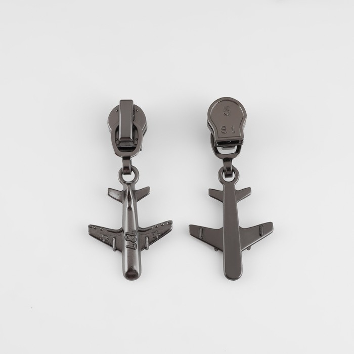 Бегунок автоматический для молнии «Спираль», №5, декоративный «Самолёт», цвет чёрный никель