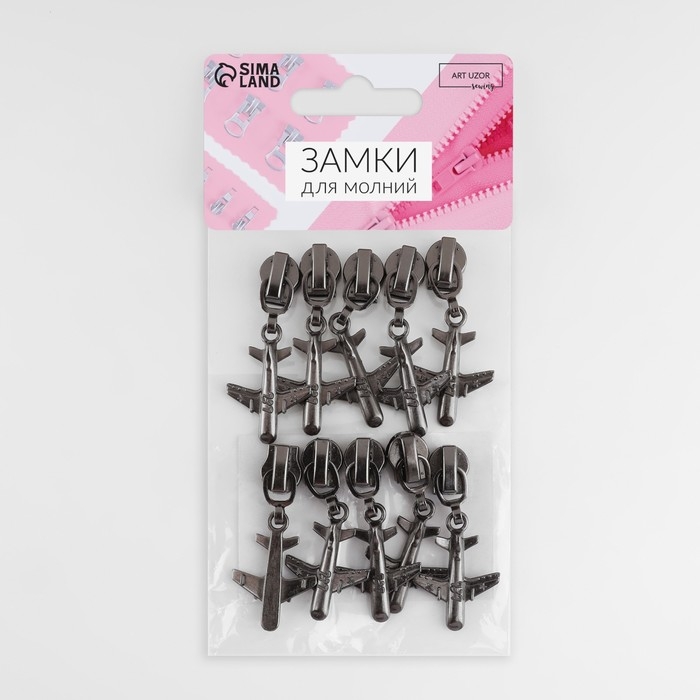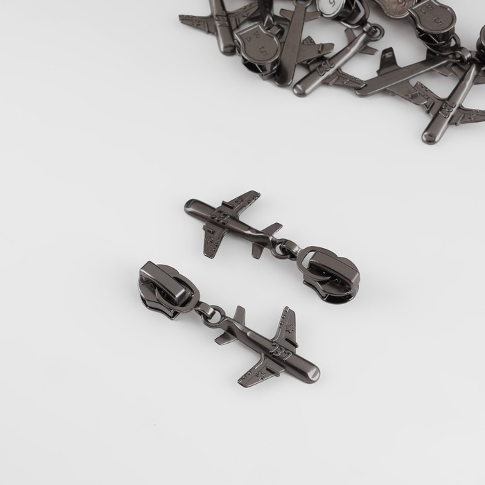 Бегунок автоматический для металлической молнии, №5, декоративный «Самолёт», 10 шт, цвет никель
