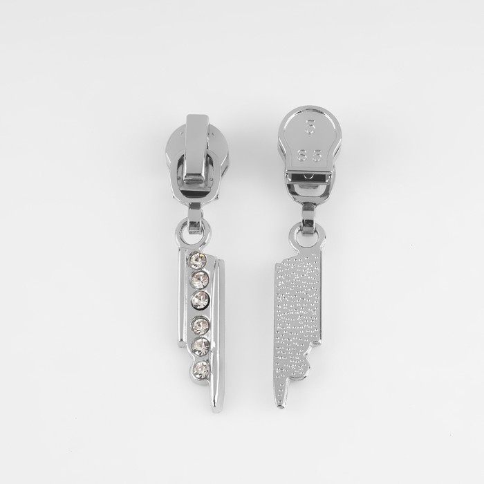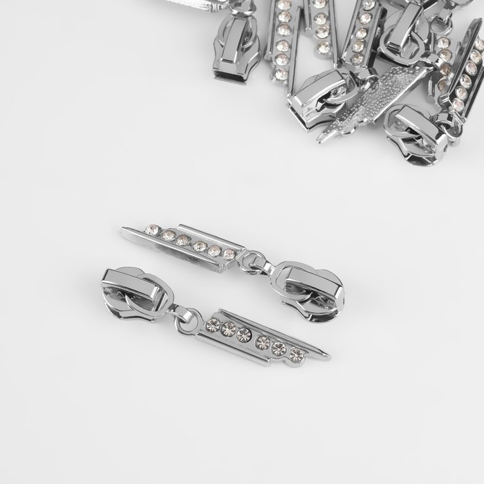 Бегунок автоматический для молнии «Спираль», №5, декоративный «Стразы», 10 шт, цвет никель