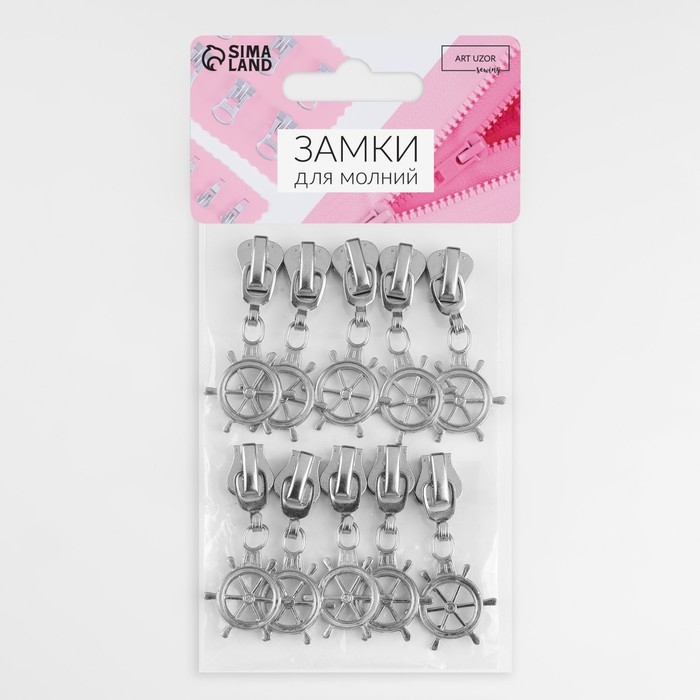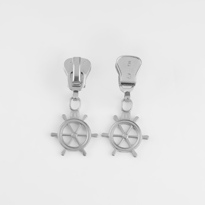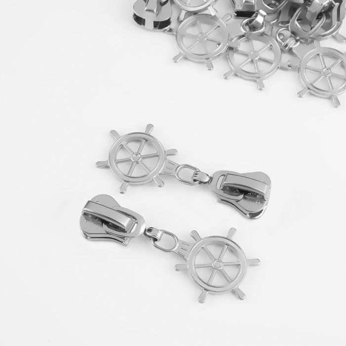 Бегунок автоматический для молнии «Трактор», №5, декоративный «Штурвал», 10 шт, цвет никель