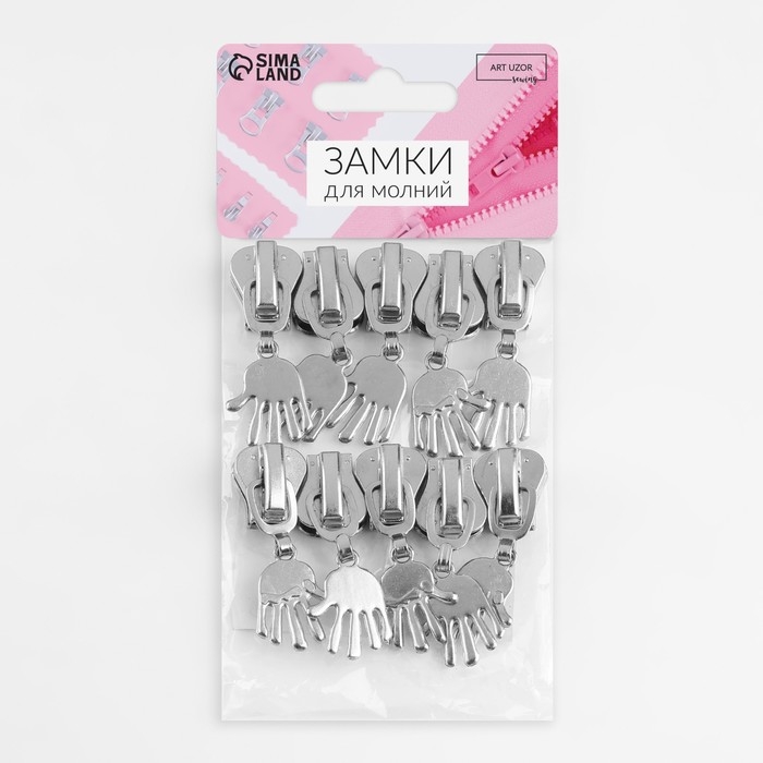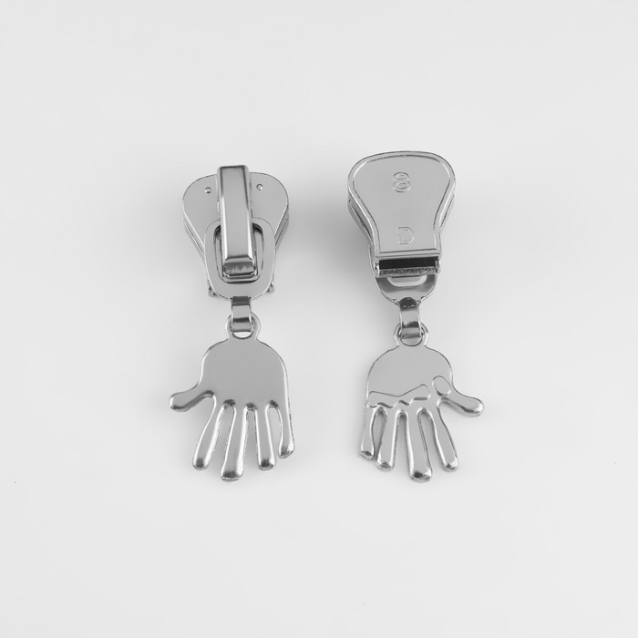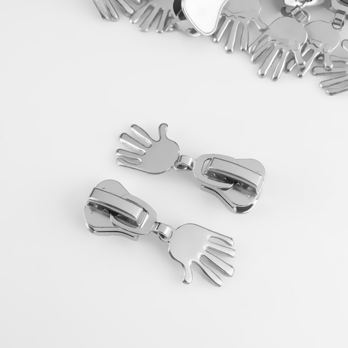 Бегунок автоматический для молнии «Трактор», №8, декоративный «Ладонь», 10 шт, цвет никель
