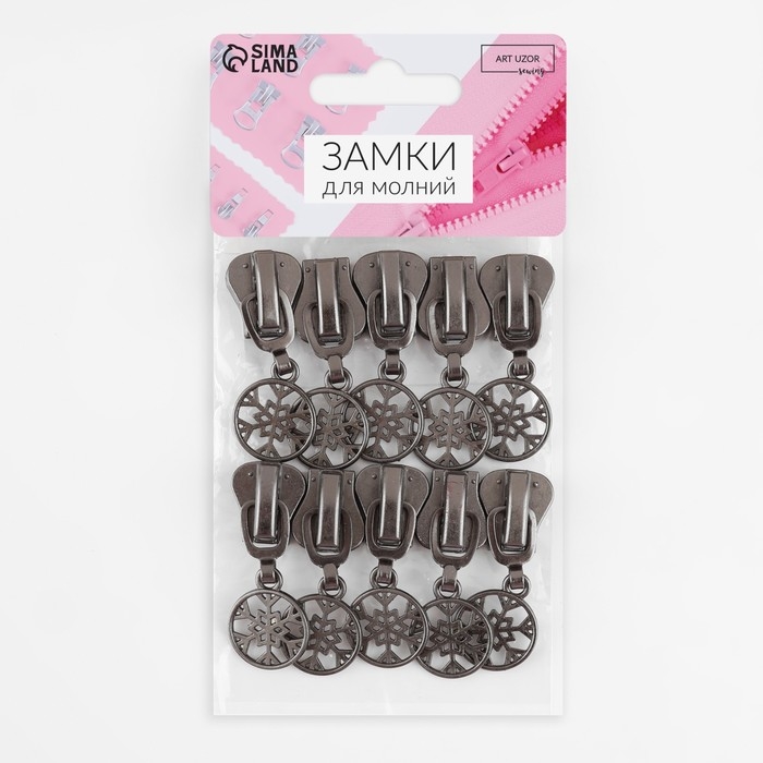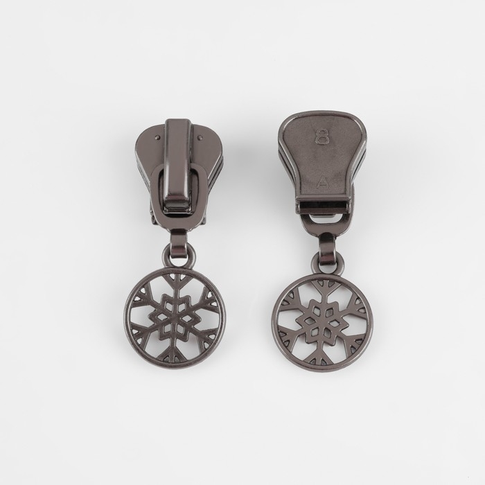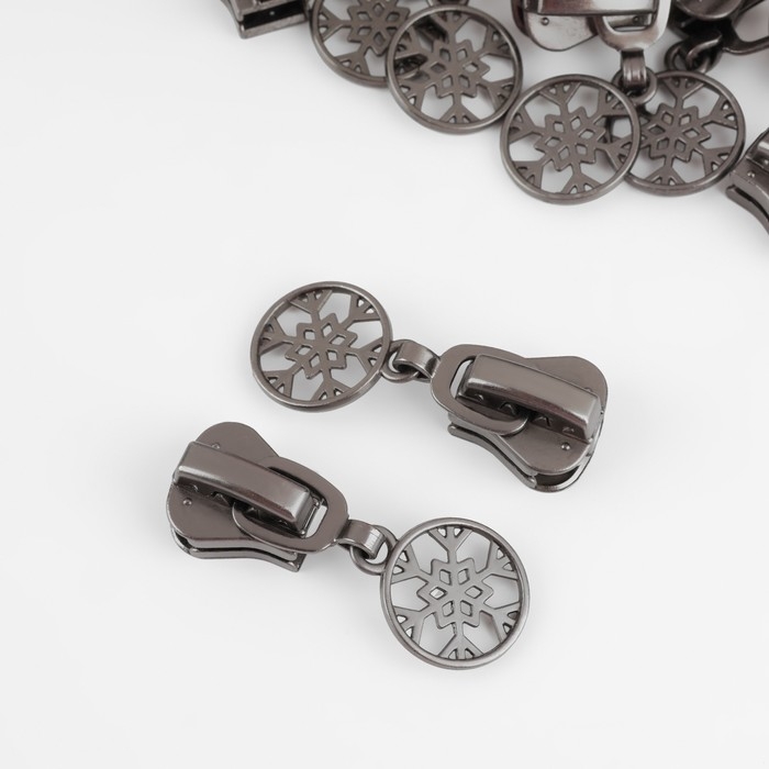 Бегунок автоматический для молнии «Трактор», №8, декоративный «Снежинка», 10 шт, цвет чёрный никель
