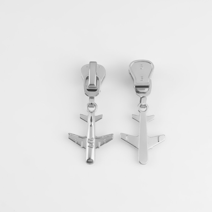 Бегунок автоматический для металлической молнии, №5, декоративный «Самолёт», 10 шт, цвет никель