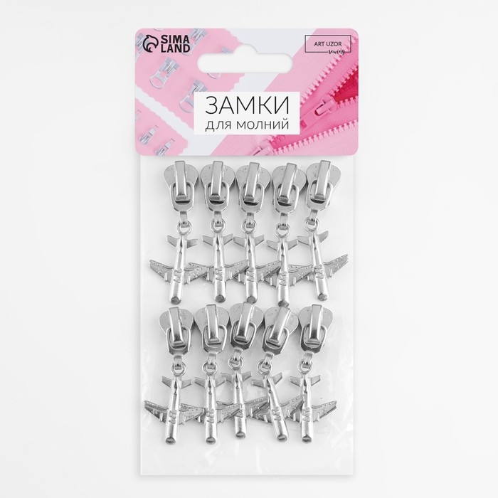 Бегунок автоматический для молнии «Трактор», №5, декоративный «Самолёт», 10 шт, цвет никель