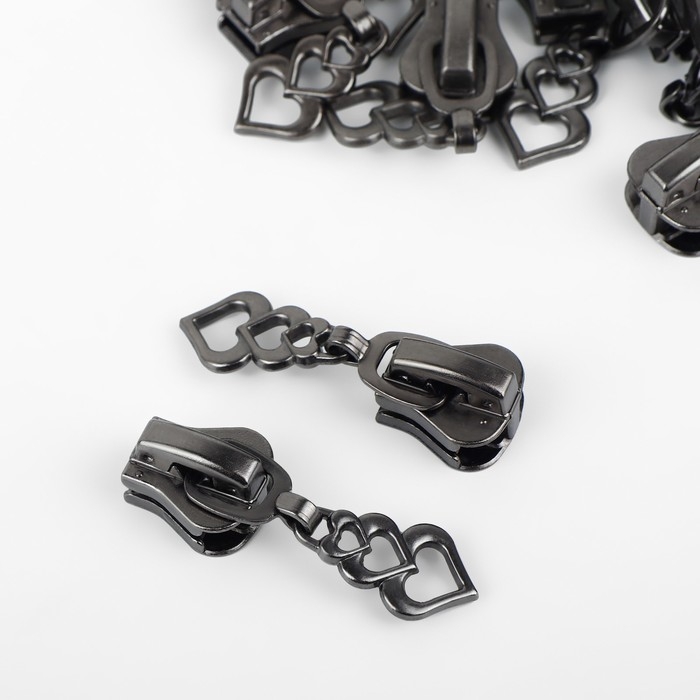 Бегунок автоматический для молнии «Трактор», №8, декоративный «Сердца», 10 шт, цвет чёрный никель