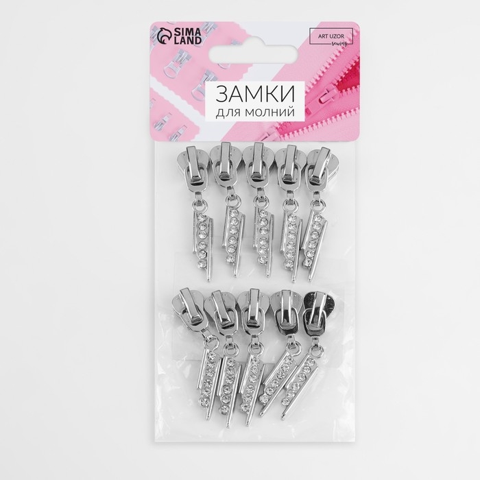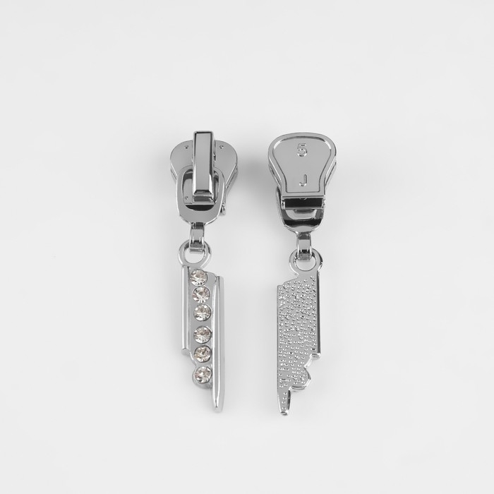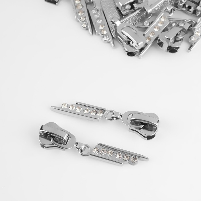 Бегунок автоматический для молнии «Трактор», №5, декоративный «Стразы», 10 шт, цвет никель