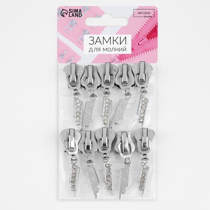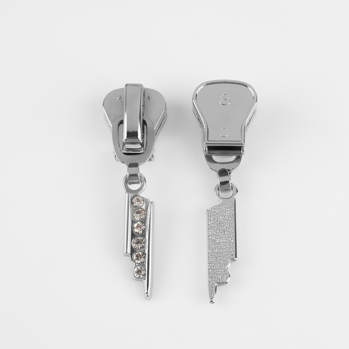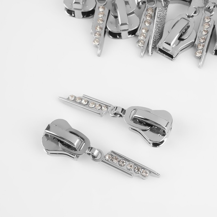Бегунок автоматический для молнии «Трактор», №8, декоративный «Стразы», 10 шт, цвет никель