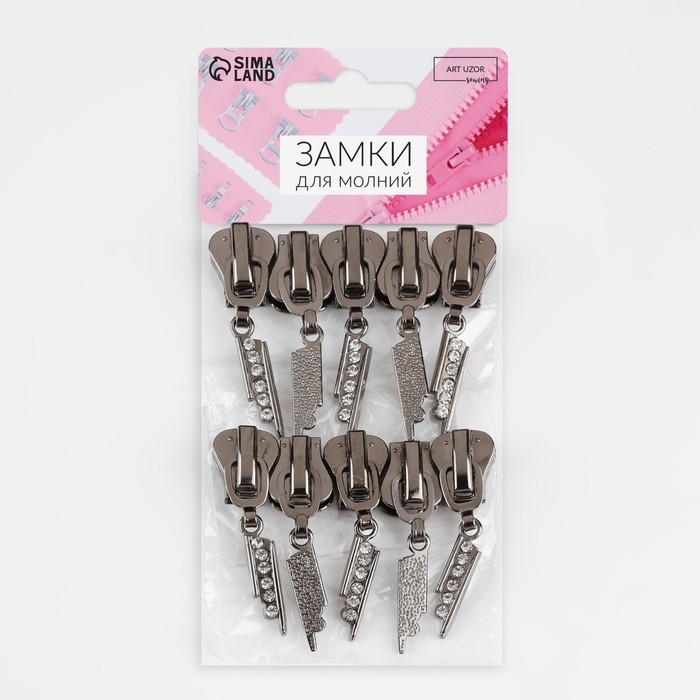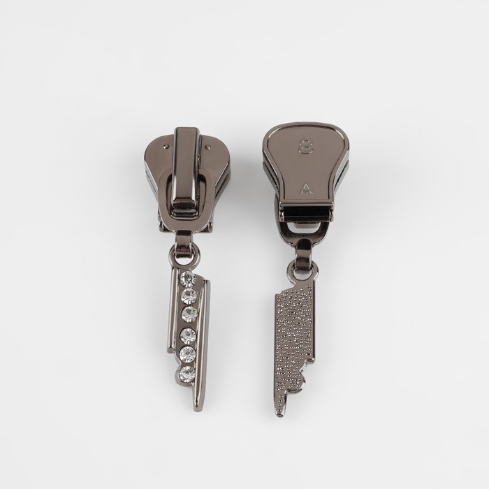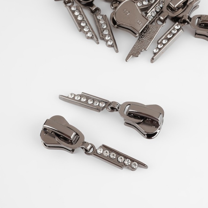 Бегунок автоматический для молнии «Трактор», №8, декоративный «Стразы», 10 шт, цвет чёрный никель