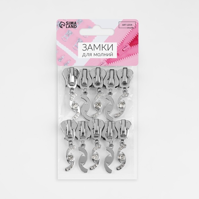 Бегунок автоматический для молнии «Трактор», №8, декоративный «Сияние», 10 шт, цвет никель