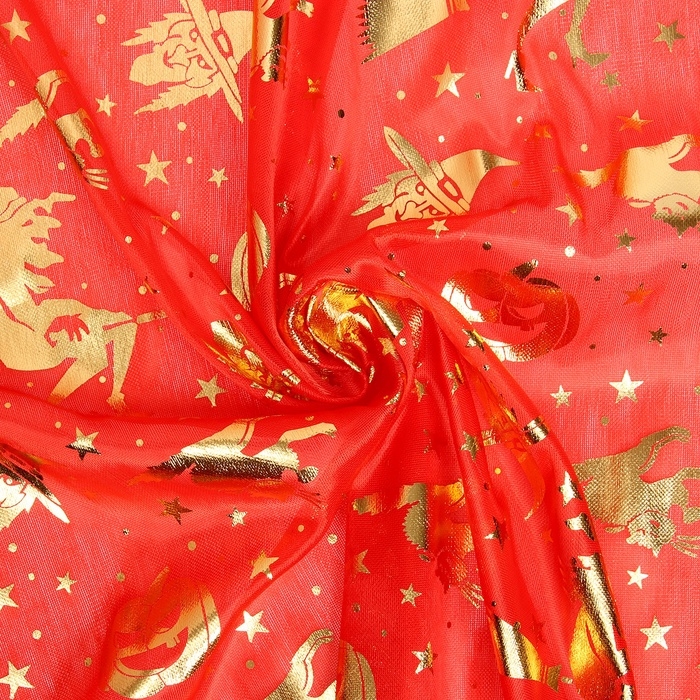 Лоскут для рукоделия, 50 х 50см, парча, серебро на красном, размытый рисунок