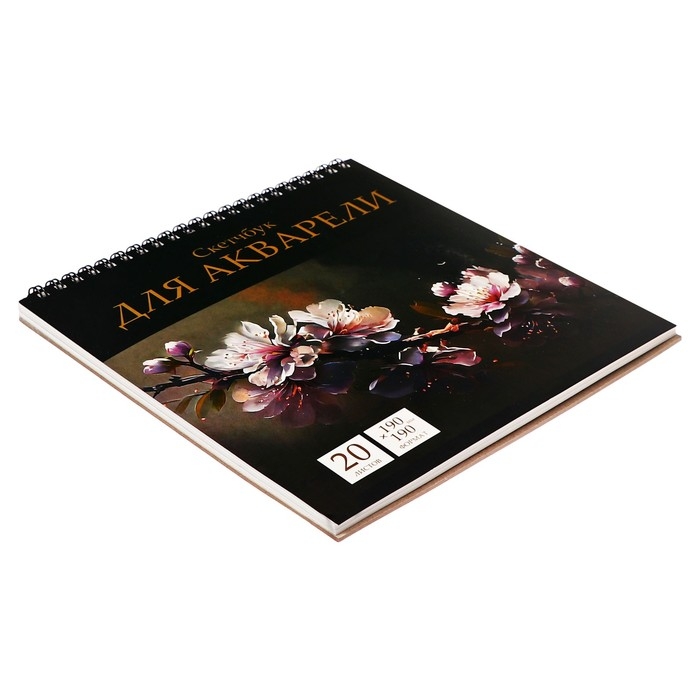 Скетчбук для акварели 190х190 мм, 20 листов на гребне, Calligrata TOP, обложка мелованный картон, жесткая подложка, блок СПб ГОЗНАК 200 г/м2