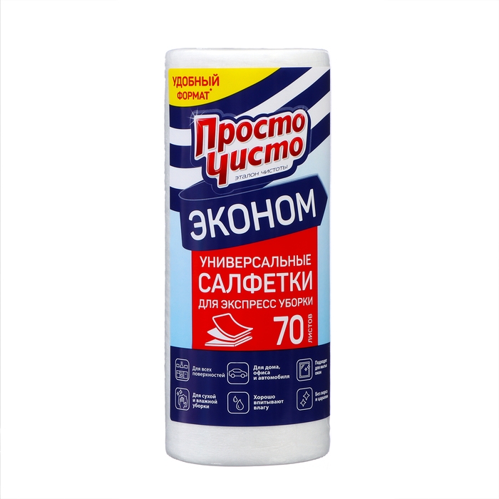 Салфетки бытовые «Просто чисто» универсальные нетканые, 70 шт.
