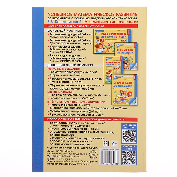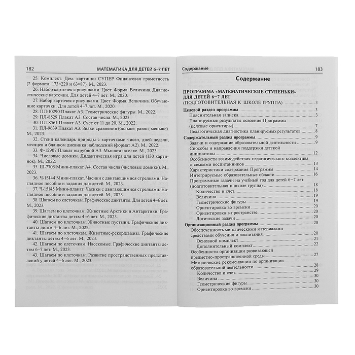 В организационно-методическое сопровождение программы «Математические ступеньки» для детей 6-7 лет входят: 1) данное методическое пособие, 2) рабочая тетрадь «Я считаю до двадцати», 3) демонстрационный материал, 4) книги дополнительного комплекта.