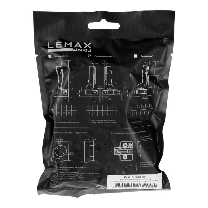 Петля полунакладная с эксцентриком softly clap, цвет черный никель, 2 шт.