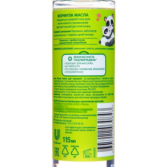 Масло детское для малышей Чистая линия с ромашкой и комплексом масел, 115 мл