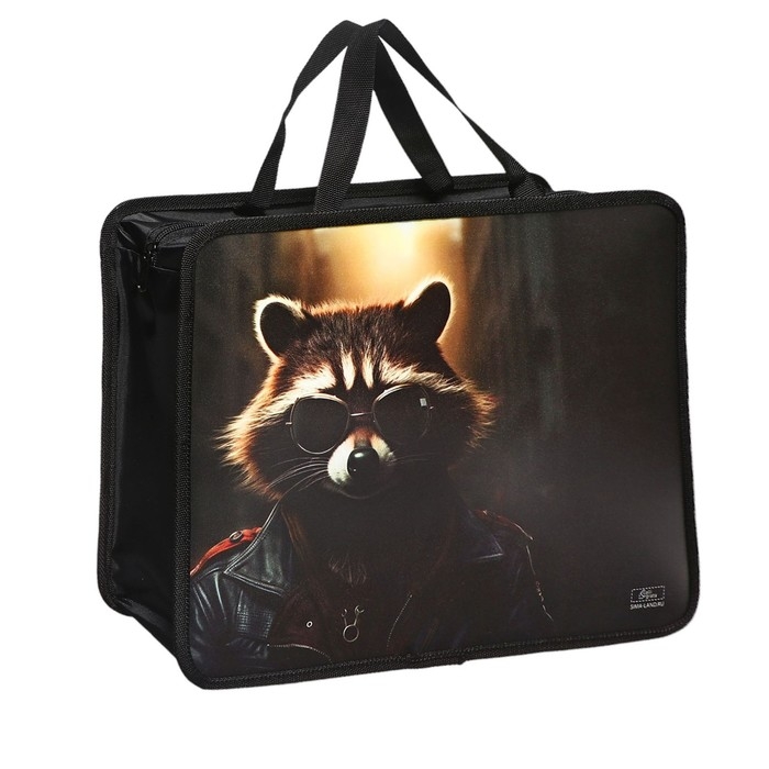 Папка с ручками А4, 330 х 260 х 75 мм, пластиковая, ручки-тесьма, Calligrata "Енот"