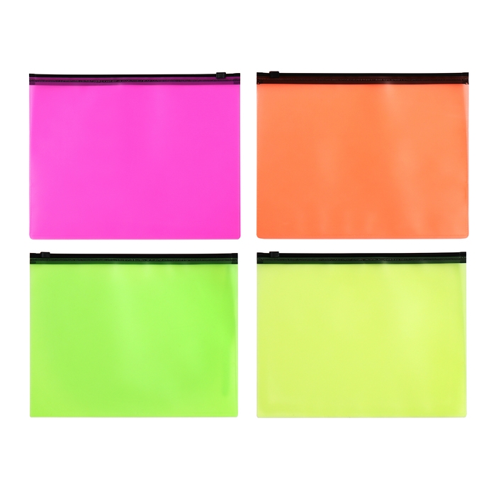 Набор папок-конверт на ZIP-молнии А5, 150 мкм, Calligrata Neon, c черной молнией, полупрозрачные, неон, 12 штук, микс