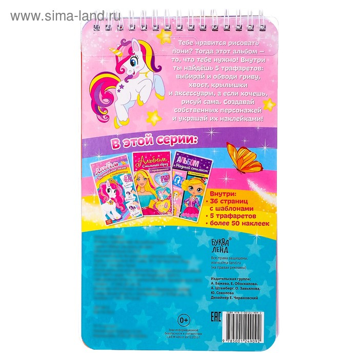 Альбом с наклейками и трафаретами «Волшебные пони», 72 стр.