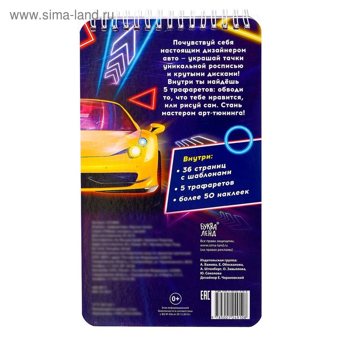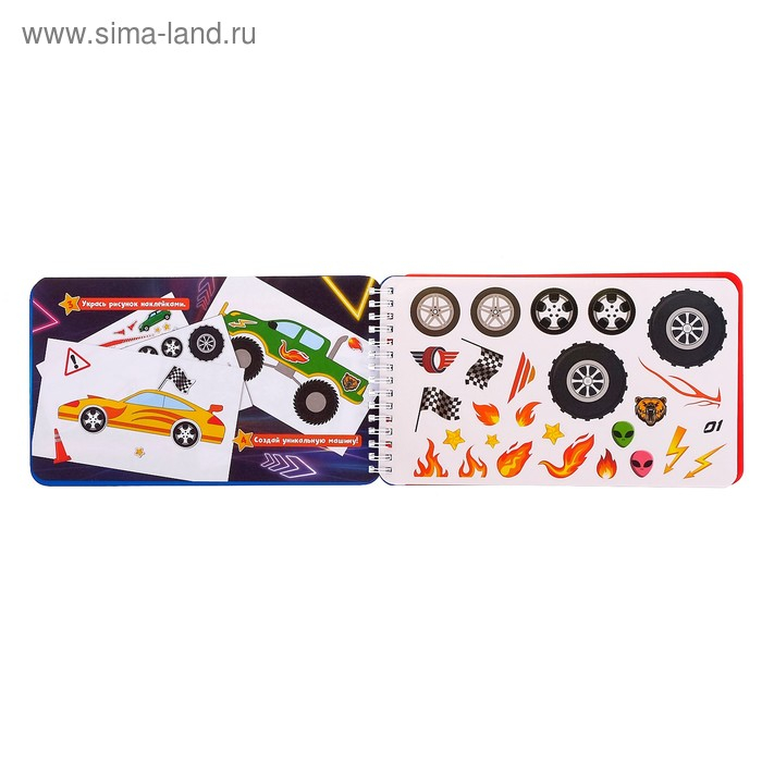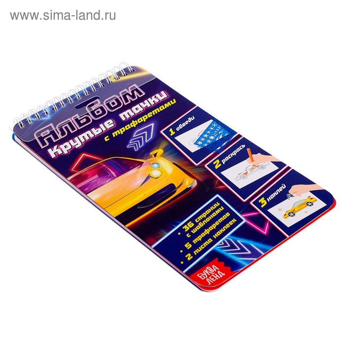 Альбом с наклейками и трафаретами «Крутые тачки», 72 стр.