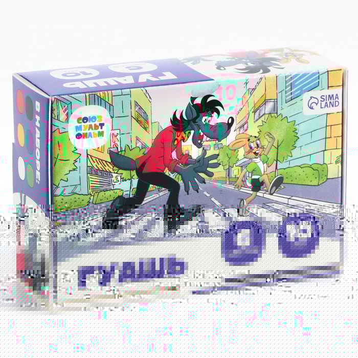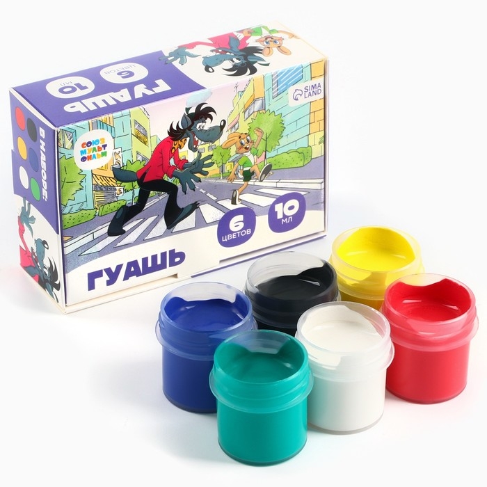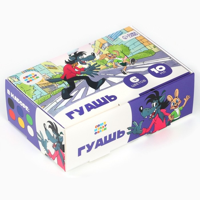 Гуашь 6 цветов по 10 мл, «Ну, погоди!», Союзмультфильм