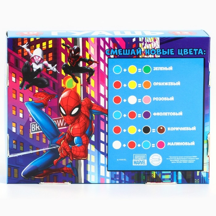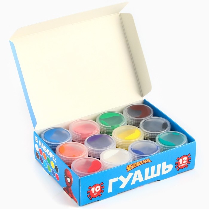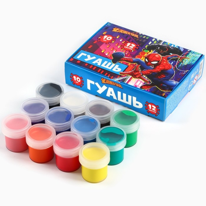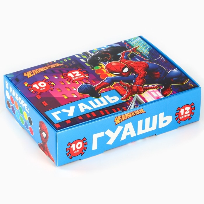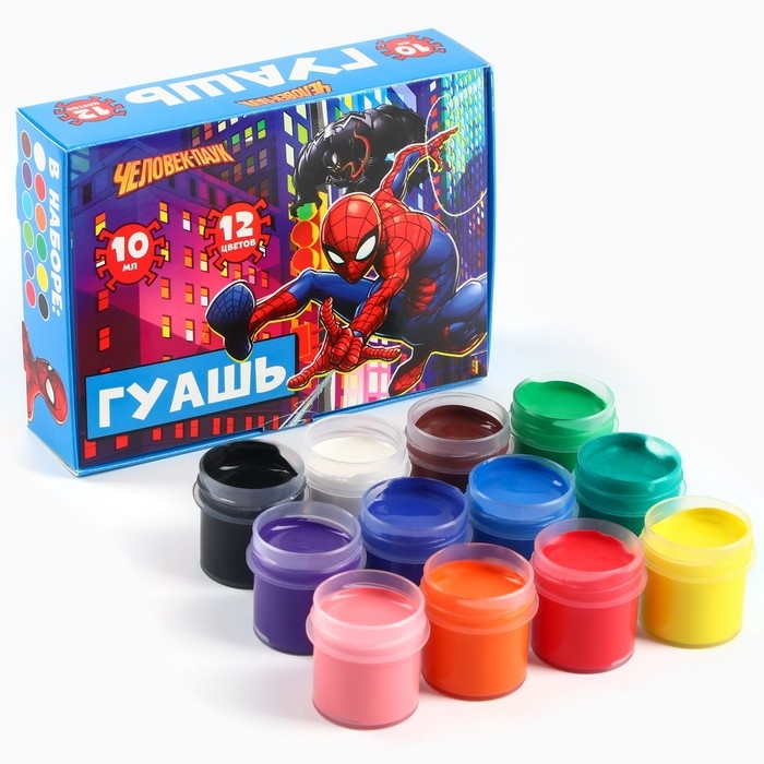 Гуашь 12 цветов по 10 мл, Человек-паук