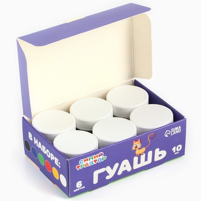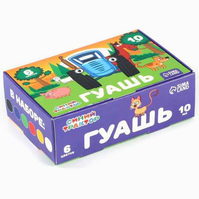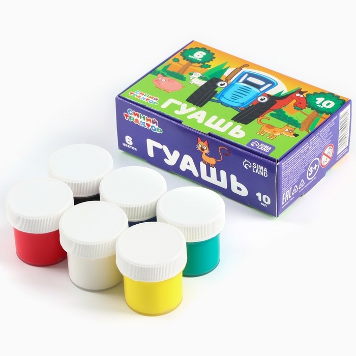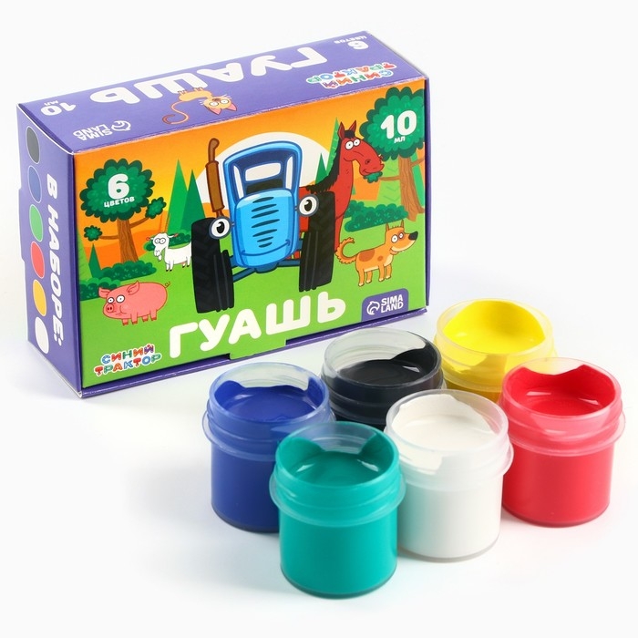 Гуашь 6 цветов по 10 мл, Синий трактор