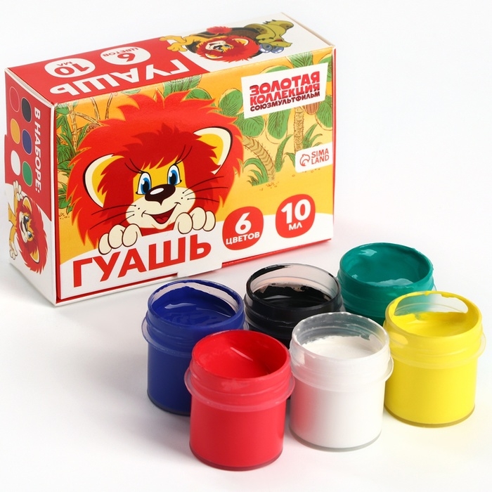 Гуашь 6 цветов по 10 мл, «Львёнок и Черепаха», Союзмультфильм