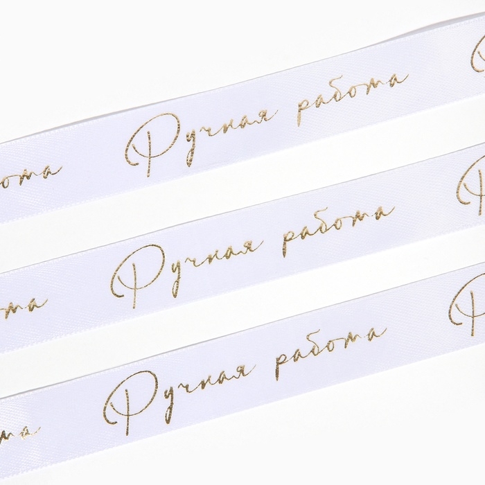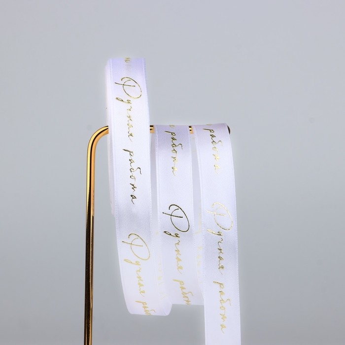 Лента атласная с тиснением «Ручная работа», белая, 2 см х 22.5 м