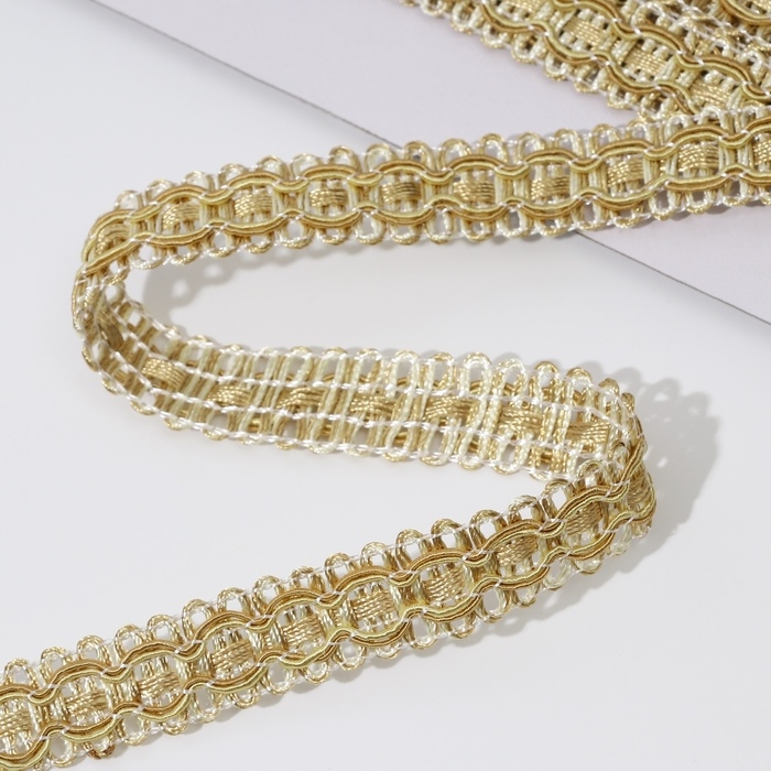 Тесьма декоративная, 16 мм, 9,1 ± 1 м, цвет сливочный/тёмно-бежевый