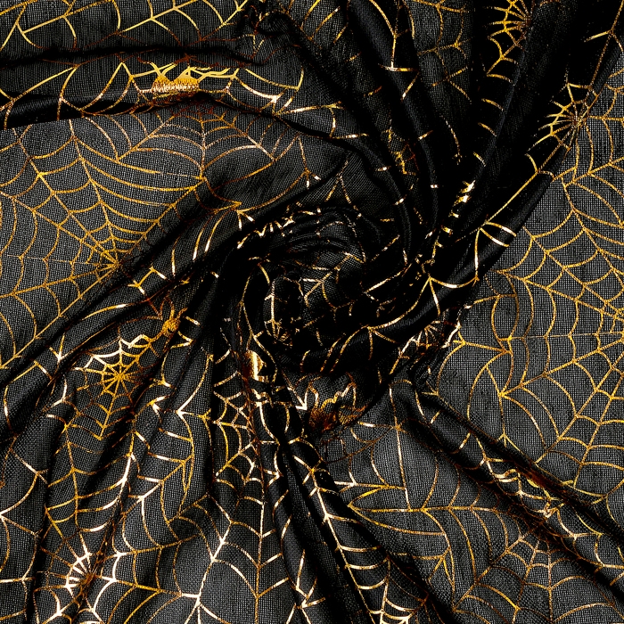 Лоскут трикотаж «Кольчуга», мелкая сетка, золото на черном