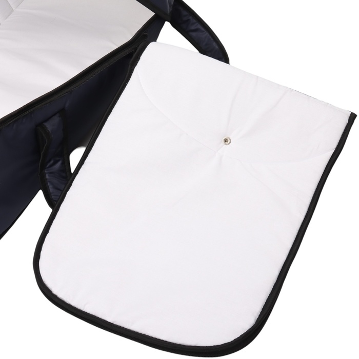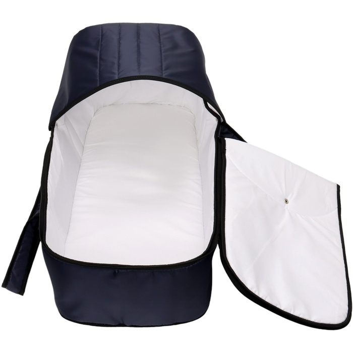 Люлька имеет съемный козырек/капюшон на кнопках, который помогает защитить вашего малыша от дождя, ветра и солнца. Так же люлька дополнительно оснащена ветрозащитным отворотом. Накидка на двух молниях поможет легко и удобно поместить малыша в переноску либо вынуть его из неё. Для большего комфорта и удобства в дно переноски вставлена жесткая вставка из ДВП. Мягкие ручки позволят рукам не испытывать дискомфорт при транспортировке.