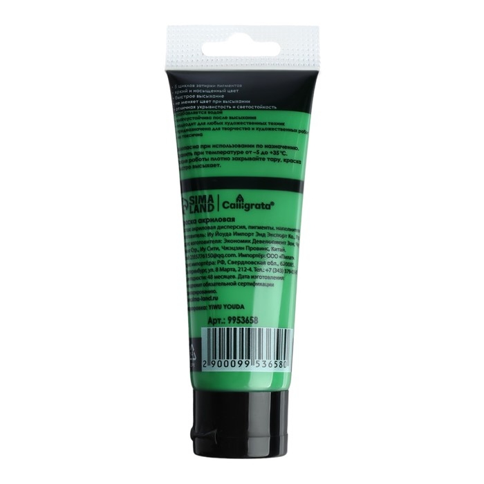 Краска акриловая матовая в тубе 75мл CALLIGRATA, КМ011, Травяная зеленая, пантон 555С