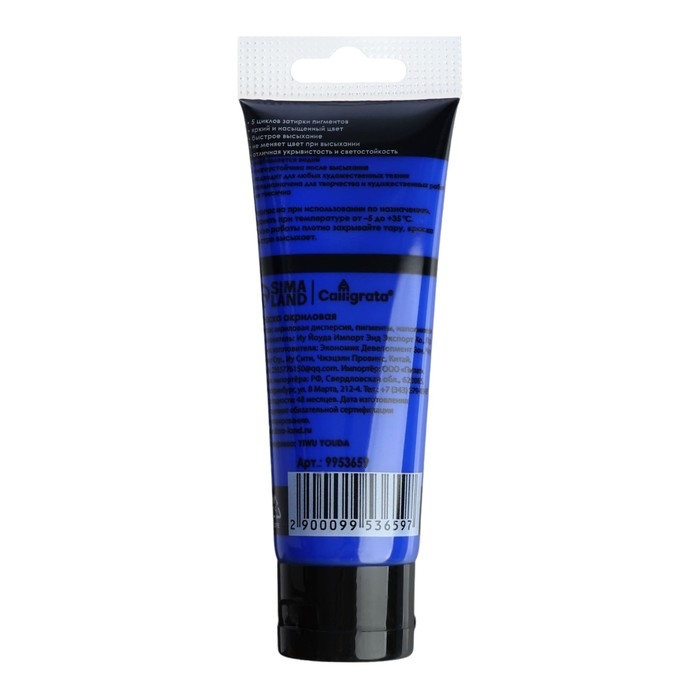 Краска акриловая матовая в тубе 75мл CALLIGRATA, КМ008, Ультрамарин, пантон 2738С