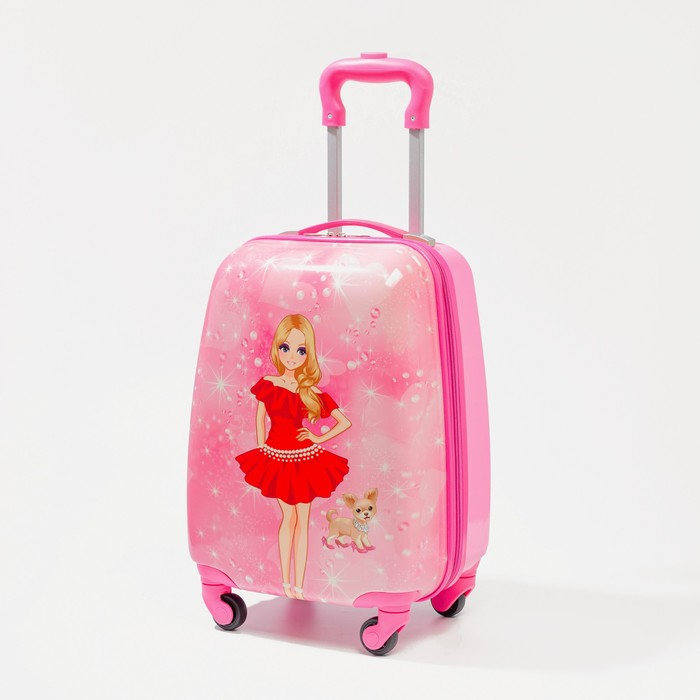 Чемодан детский 29 л (S), отдел на молнии, 4 колеса, цвет розовый