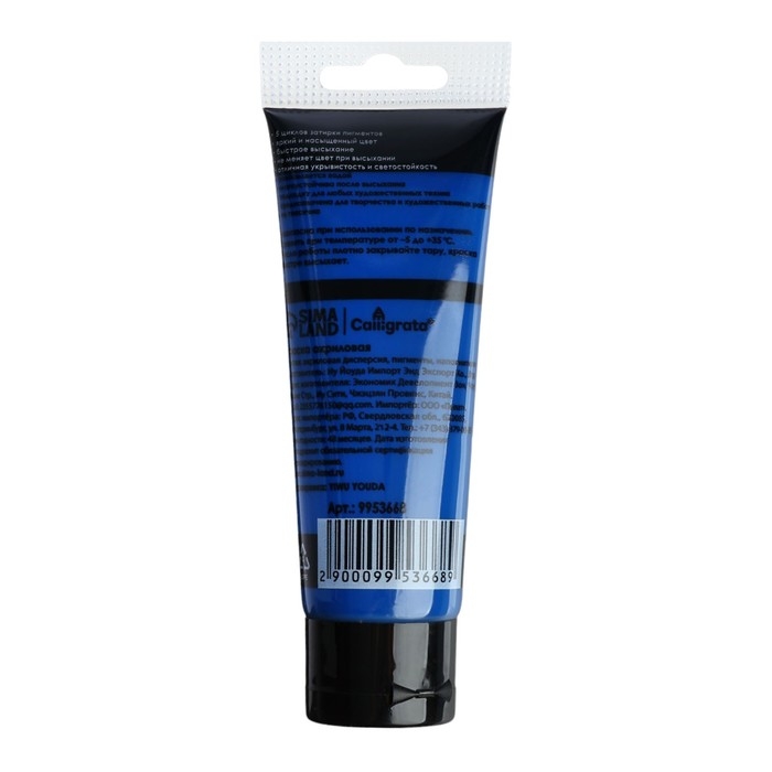 Краска акриловая матовая в тубе 75мл CALLIGRATA, КМ009, Фталоцианиновый синий, пантон 295С