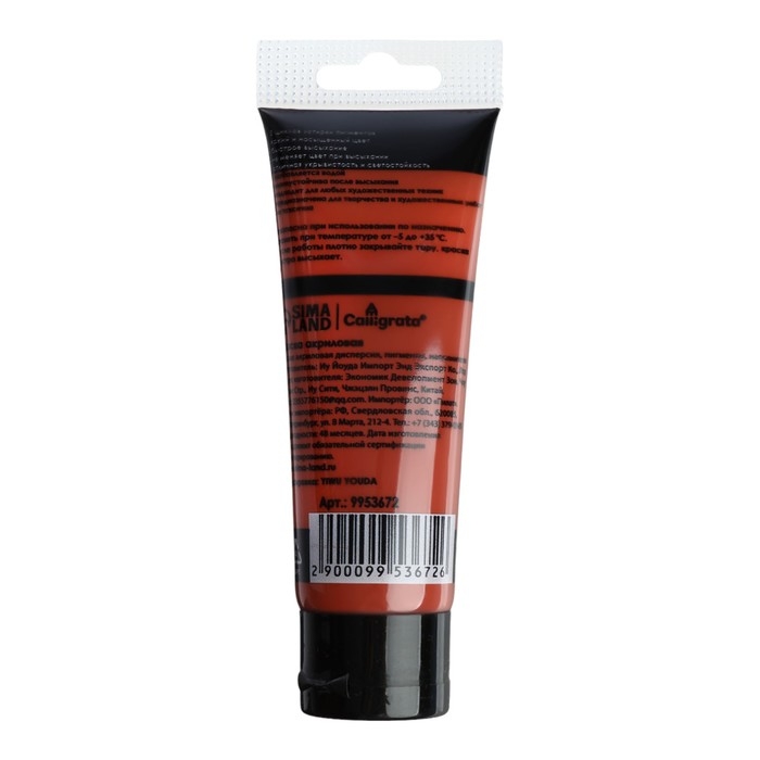 Краска акриловая матовая в тубе 75мл CALLIGRATA, КМ018, Красная охра, пантон 7609С