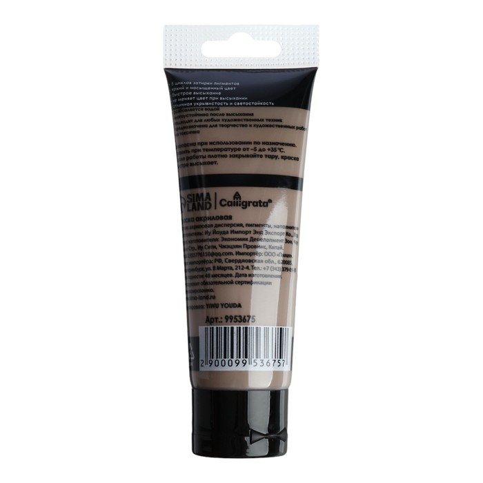 Краска акриловая матовая в тубе 75мл CALLIGRATA, КМ026, Шоколад, пантон BLACK 5C