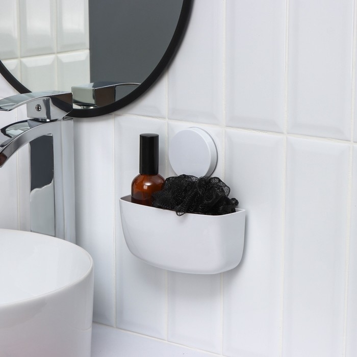 Держатель для ванных принадлежностей на липучке Доляна, 21×19×9 см, цвет белый