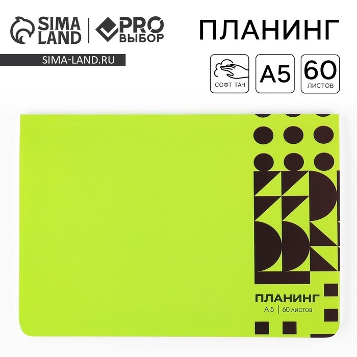 Планинг в мягкой обложке софт-тач А5, 60 листов PROвыбор «Зеленый»